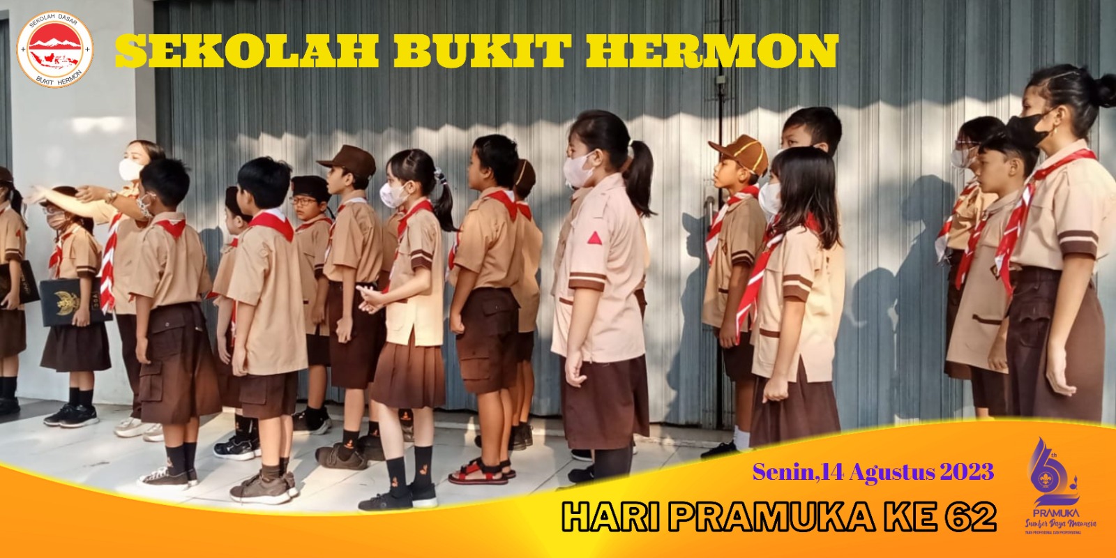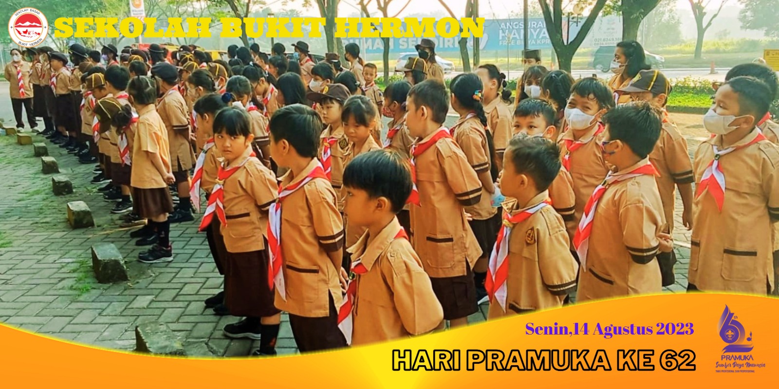 HARI PRAMUKA, yang diperingati oleh Sekolah Bukit Hermon pada tanggal 14 Agustus 2023 dilokasi halaman depan Sekolah, dengan Tema " Pramuka Sumber Daya Manusia Yang Profesional dan Proporsional "